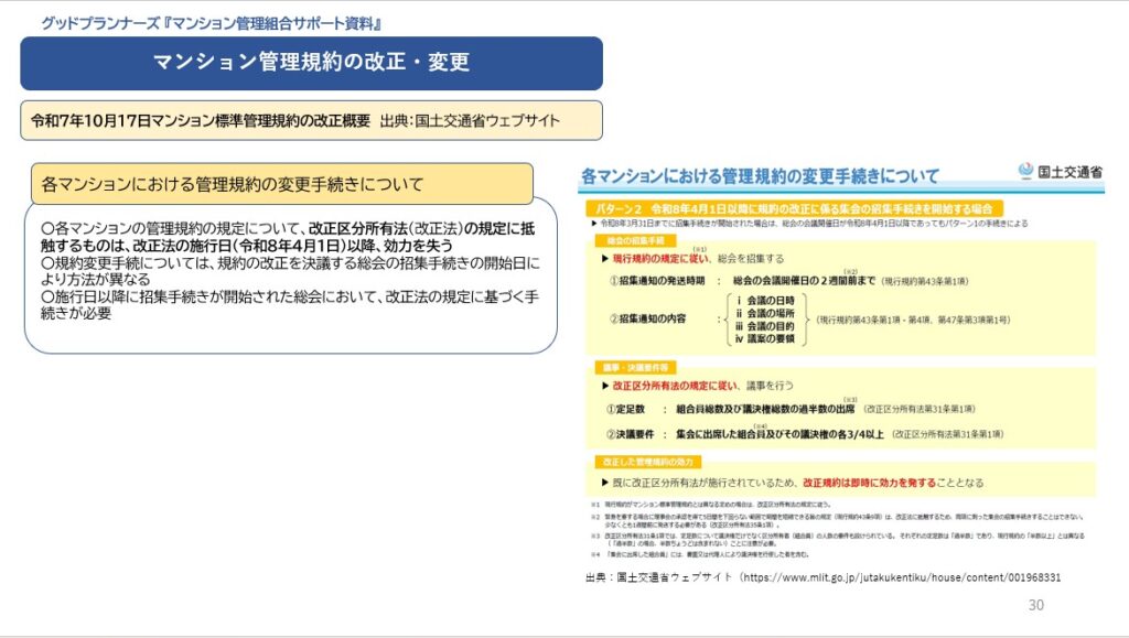 国土交通省ウェブサイトの管理規約の変更手続きを参照をお願いします。